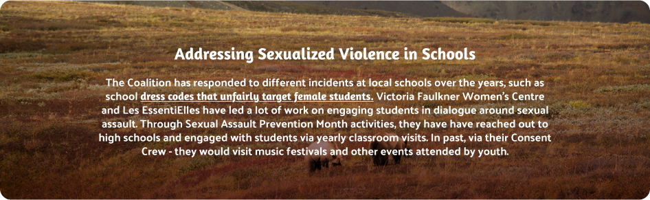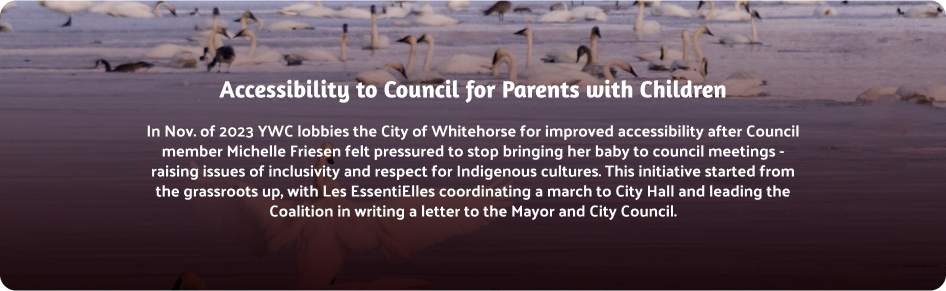 We endeavour to mobilize in response to emerging issues that affect Yukon women and girls.