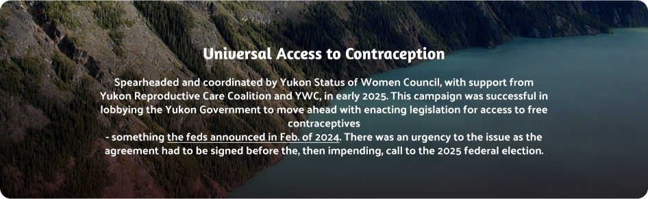 Our sector's yearly campaigns encapsulate many of the broader systemic problems experienced by women and children. These campaigns shine a light upon the continued efforts needed, and the milestones achieved, for women in Yukon and around the world. They seek to educate and keep the flame of resistance and unity alive.
